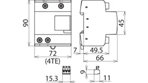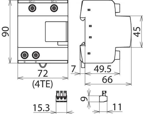 • Space-saving enclosure designed for up to 1,500 V DC with a width of four standard DIN modules