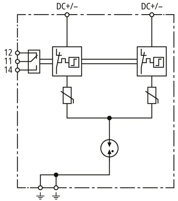 Total discharge current (10/350 µs) [DC+/DC- -> PE] (Itotal ) 10 kA
