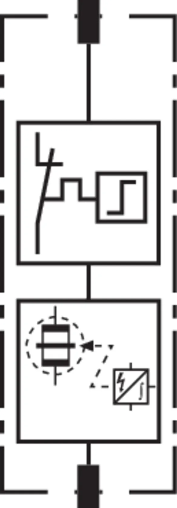 When using surge arresters in d.c. applications, disconnection must be reliably ensured even if there are no zero crossings. The specifically developed DC Disconnection (DCD) technology acts as a wedge similar to a blocking valve and interrupts the direct current. Consequently, the devices of the DEHNguard SE DC series are capable of safely interrupting direct currents, thus preventing fire damage caused by d.c. switching arcs.