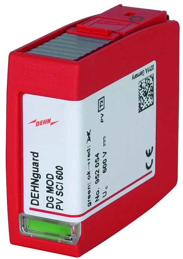 The patented SCI technology with active arc extinction allows to actively, quickly and safely extinguish a possible switching arc in case of overload. The PV fuse integrated in the short-circuit path trips immediately after the arc has been extinguished, thus ensuring safe electrical isolation (interruption). Consequently, all PV arresters from DEHN combine surge protection, fire protection and personal protection in a single device