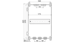 Lightning-current-tested insulating enclosure with a max. capacity of ten modules; with grommet flange for 11 EPDM cables (Ø5-30 mm) and three mounted M20 grommet openings with lock nut; ideally suited for series connection.