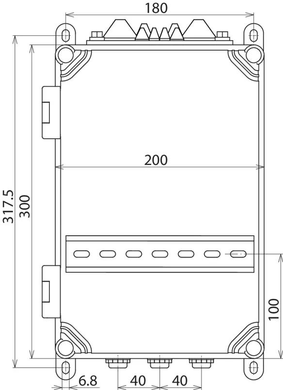 Insulating enclosure for arresters with a capacity of 2x 12 modules; with integrated, elastic seal membrane for cable entry; ideally suited for feed-through wiring.
