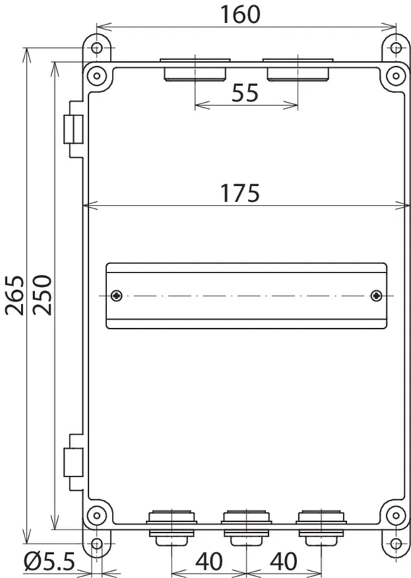 Insulating enclosure for arresters with a capacity of 12 modules; with integrated, elastic seal membrane for cable entry; ideally suited for feed-through wiring.