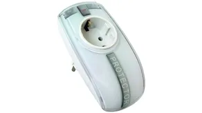 Adapter with integrated surge protection and child lock.