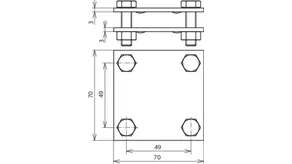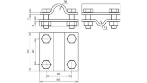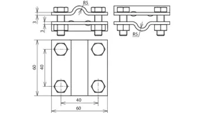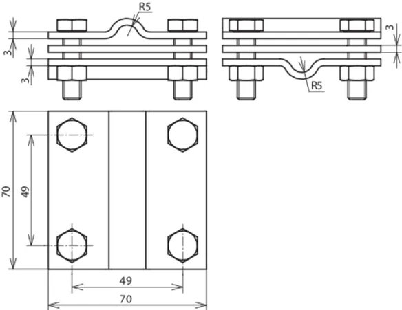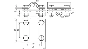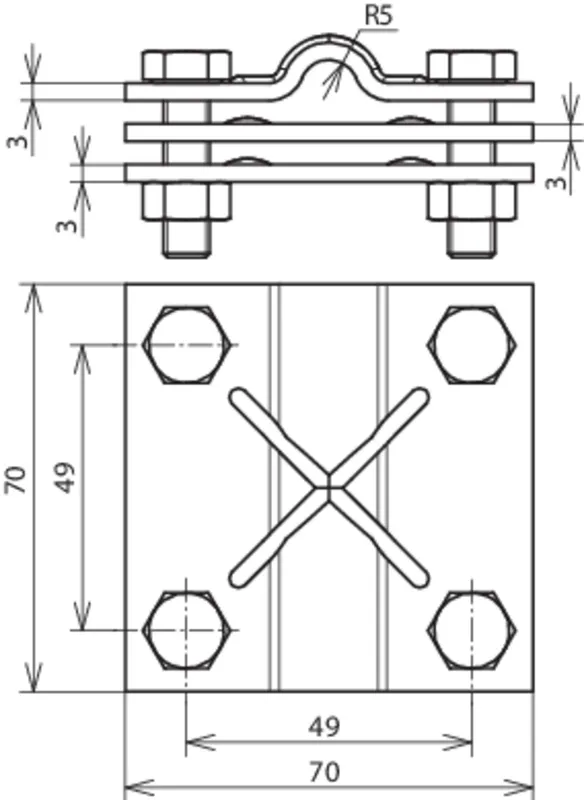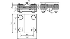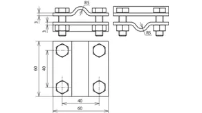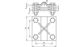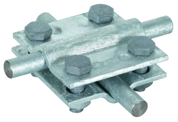 Cross units without intermediate plate for two round and flat conductors HDG steel
