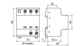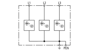 Lightning impulse current (10/350 µs) [L1+L2+L3-PEN] (Itotal ) 22.5 kA