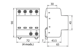 Lightning impulse current (10/350 µs) [L-N]/[N-PE] (Iimp ) 7.5 / 15 kA