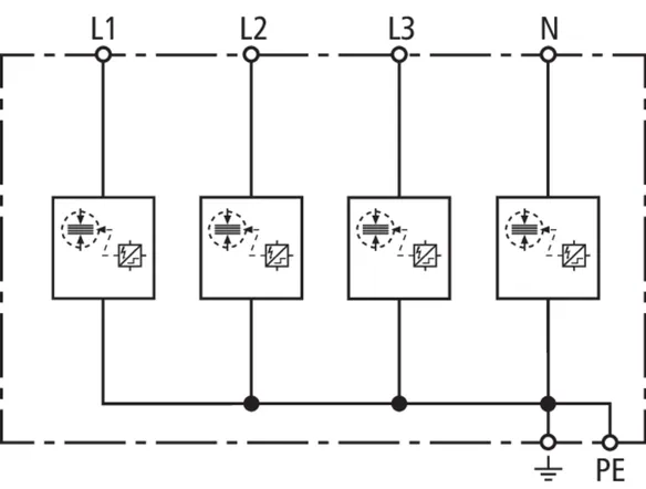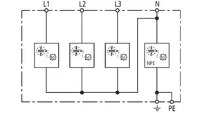 Four-pole combined arrester for 230/400 V TN(C)-S systems