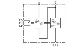 Application-optimised and prewired combined lightning current and surge arrester for single-phase TN systems with a nominal voltage of 230 V (2+0 configuration); with floating remote signalling contact.