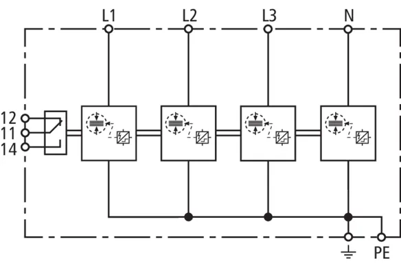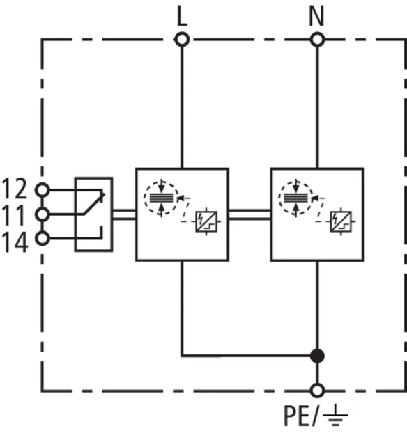 Lightning impulse current (10/350 µs) [L, N-PE] (Iimp ) 12.5 kA