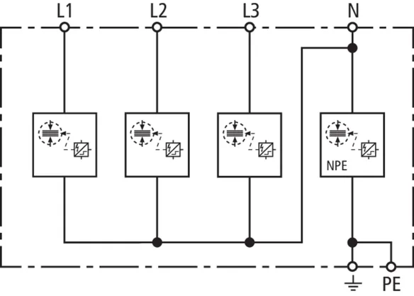 • Fulfils the minimum requirements on the lightning current discharge capacity according to IEC 60364-5-53