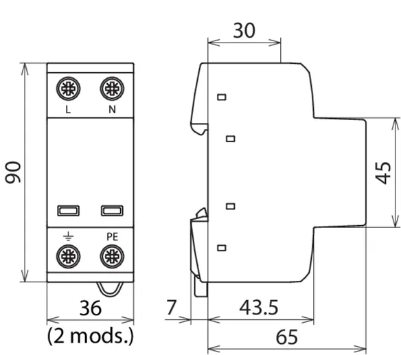Lightning impulse current (10/350 µs) [L-N]/[N-PE] (Iimp ) 7.5 / 30 kA