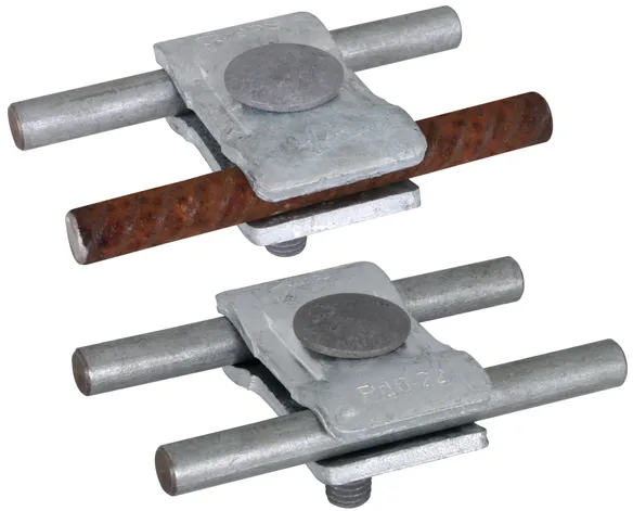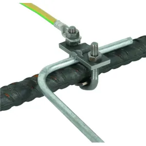 Clamps for connecting reinforcing steel mesh or bar with round and flat conductors