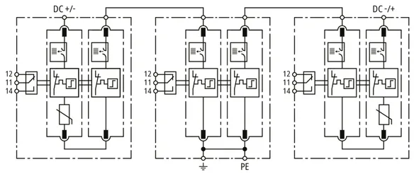 Modular combined arrester for DC applications; with floating remote signalling contact.
