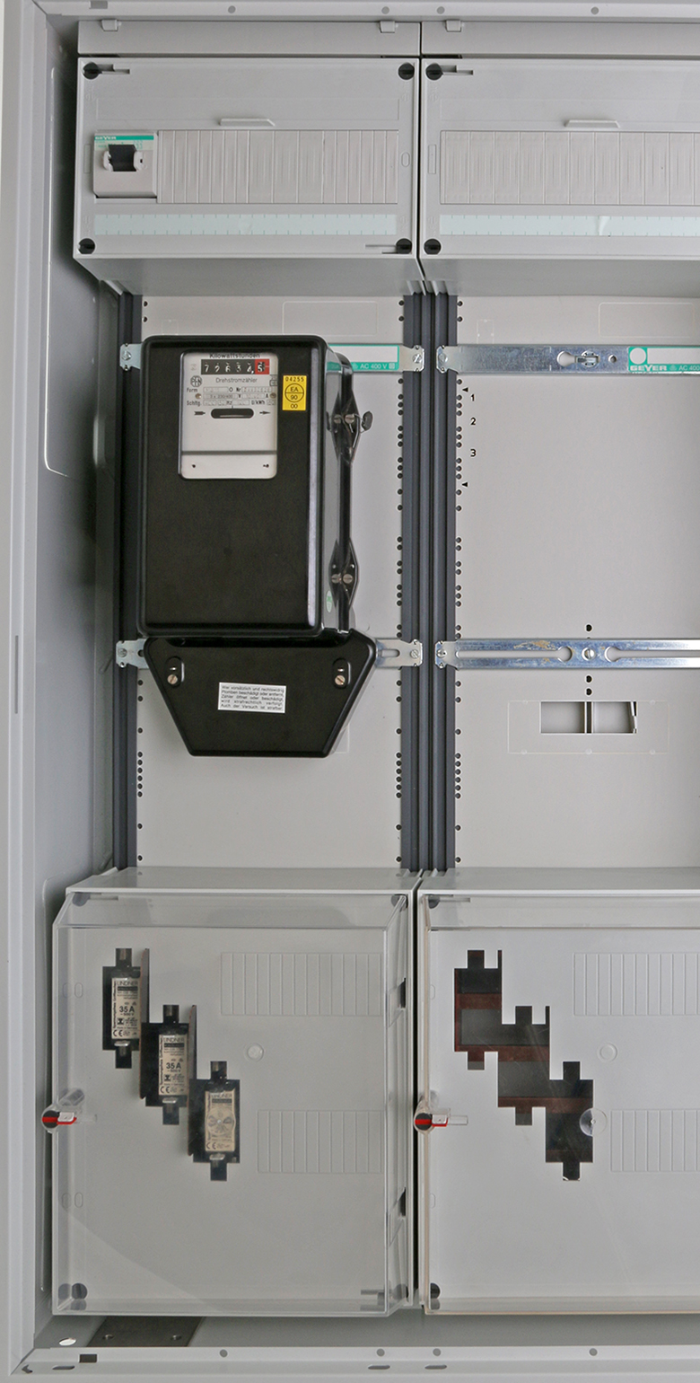 Die Lösung: In diesem Fall wird der Kombi-Ableiter im oberen Anschlussraum des Zählerschranks (OAR) installiert. Als Alternative bietet sich ein separates Isolierstoffgehäuse vor dem Zählerschrank an.