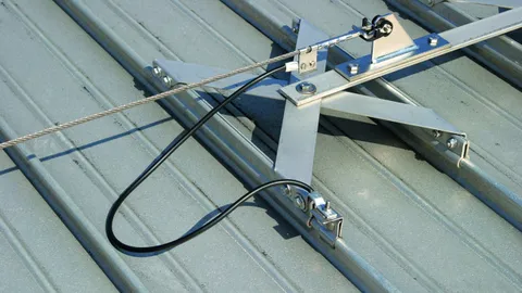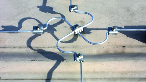 Dachleitungshalter, Dehnungsstücke und Überbrückungen (Seile, Bänder, Laschen) für Flachdächer.