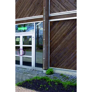 The hazardous area for people outside of a building is defined as an area of 3 m around the down conductor and from ground level up to a height of approx. 3 m.