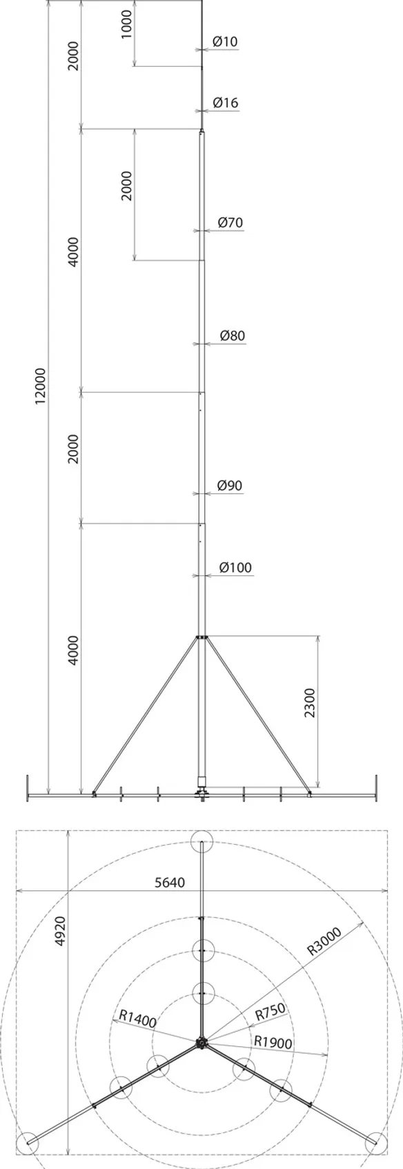 | Max. gust wind speed for 24 bases, 17 kg each | 170 km/h |
