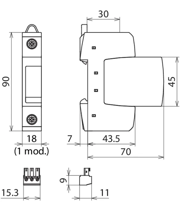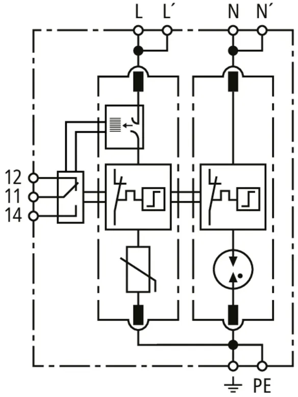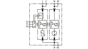Modular surge arrester with Advanced Circuit Interruption (ACI) for single-phase 230 V-TN systems.