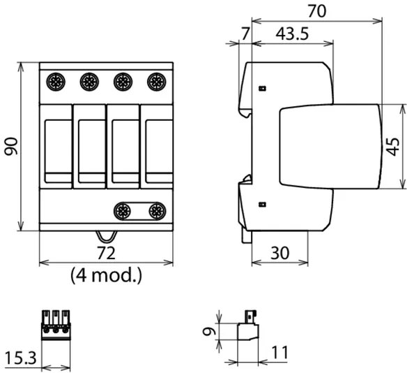 3-pole, modular, pluggable surge arrester