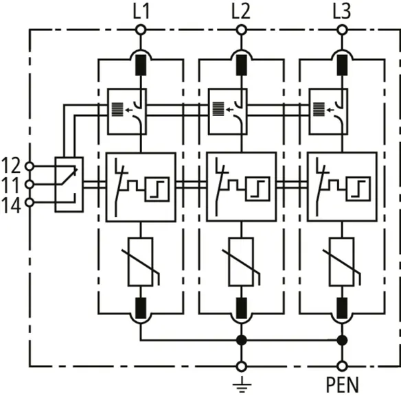 Modular surge arrester with Advanced Circuit Interruption (ACI) for TN-C systems.