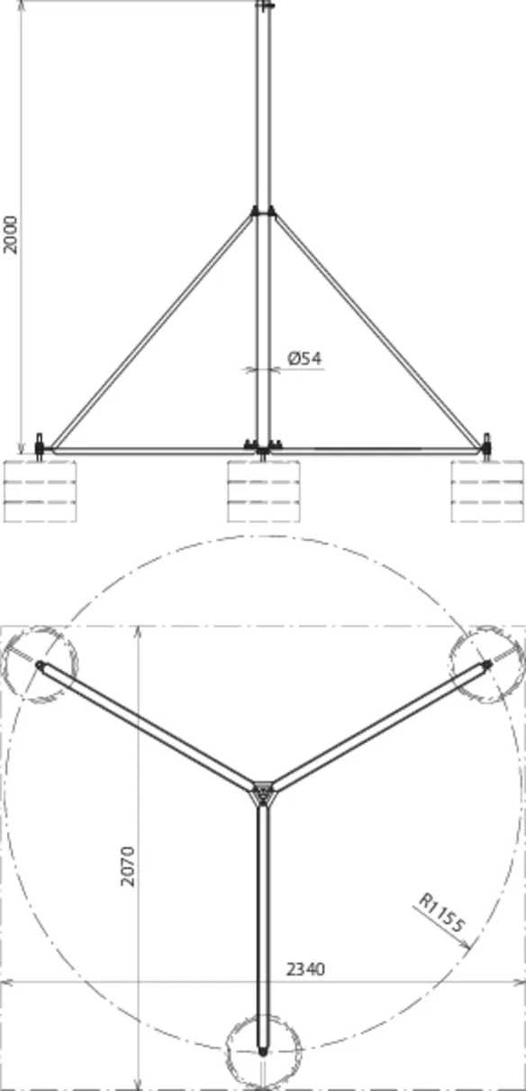 For air-termination rods D40, D50 and D60, DEHNiso Combi supporting tubes with air-termination rod / tip or HVI Conductor installed in / on the supporting tube.