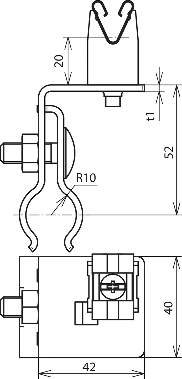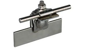 Seam clamp with enlarged contact surface for fixing additional air-termination systems or air-termination rods on metal roofs (e.g. Part No. 123 021).