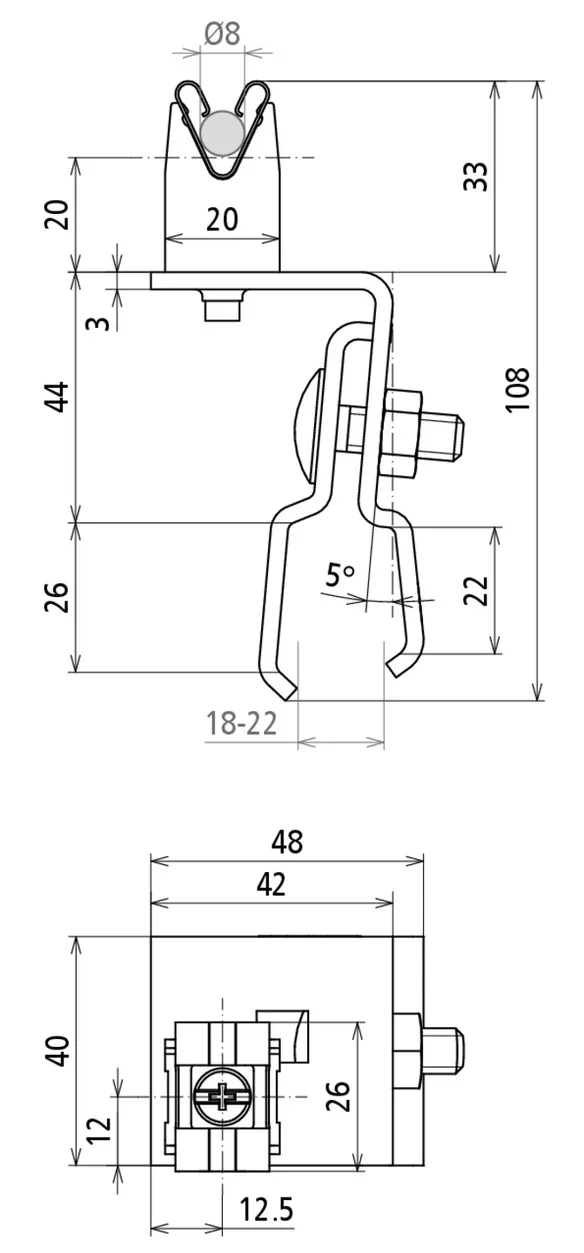 Roof conductor holder for metal roofs with clamping piece, Al (clamping seam)