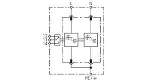 Kit consisting of pluggable lightning and surge arresters, including insulated module wiring bar for use in inverter systems with active anti-PID with maximum DC offset of 750 V DC. Wiring of the earthing systems in accordance with IEC 60364-4-44, Table 44.A1 – RE and Z as well as RE and RA connected.