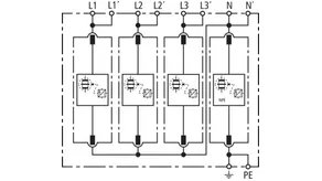 Modular combined lightning current and surge arrester for TT and TN-S systems (3+1 configuration).