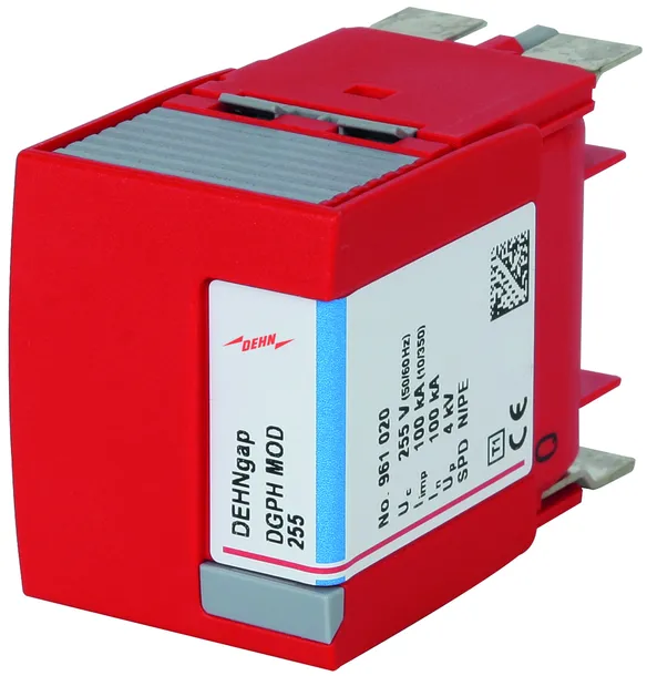 N-PE spark-gap-based protection module for all devices of the modular DEHNgap M family.