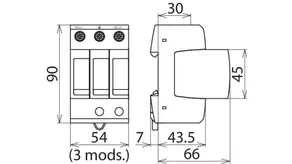 Modular multipole surge arrester with three-step d.c. switching device for protecting 3 MPP inputs; for PV systems with remote signalling contact for monitoring device (floating changeover contact).