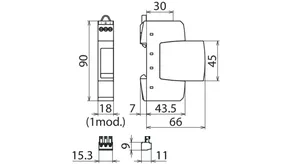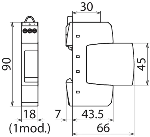 • Two-pole surge arrester consisting of a base part and a plug-in protection module