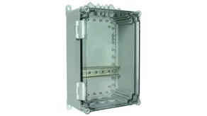 Lightning-current-tested insulating enclosure with a max. capacity of seven modules; with EPDM grommet flange for two cables (Ø1-25 mm) and three mounted M20 grommet openings with lock nut; ideally suited for series connection.
