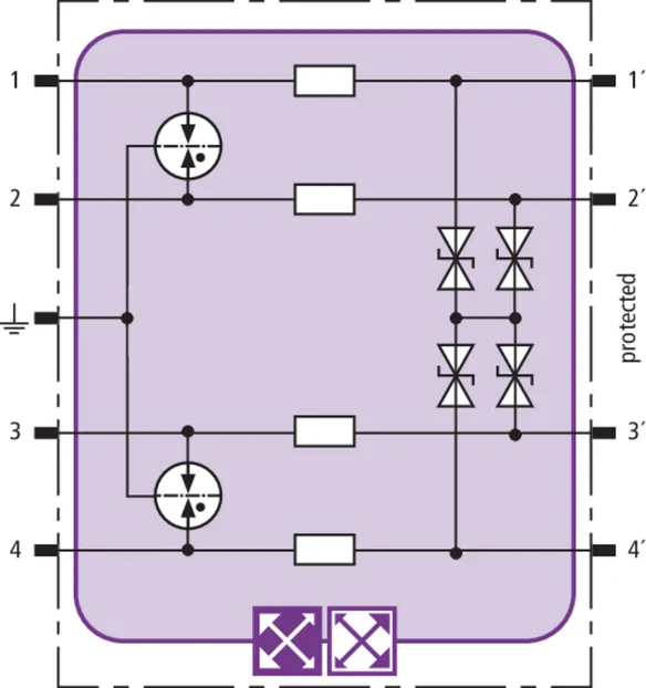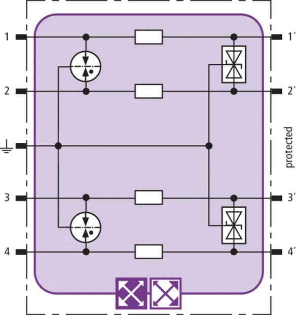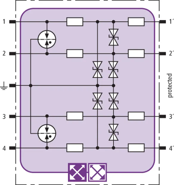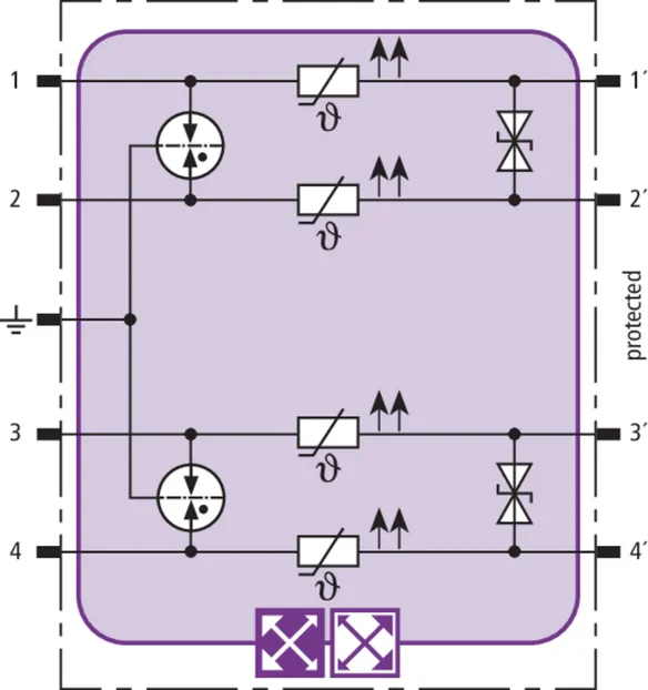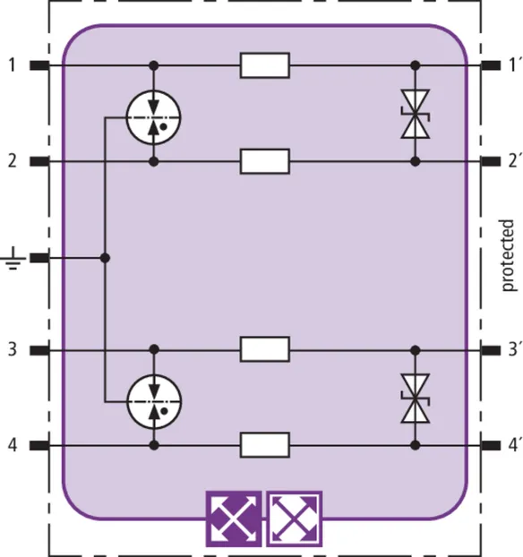 All protection elements are integrated in the plug-in module and are monitored by means of LifeCheck.
