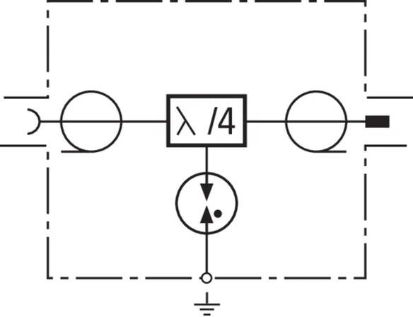 Combined lightning current and surge arrester with maintenance-free quarter-wave technology for multi-frequency applications (multi-carrier systems). The arrester is also capable of discharging high partial lightning currents. No remote supply as the arrester represents an electrical short-circuit for low-frequency signals. Broadband device for all 4+3G services.