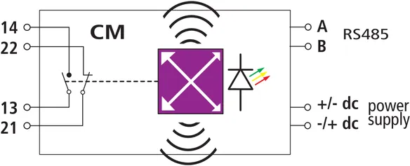 RS485 interface A/B (only for DRC MCM XT) for communication and control room solutions.