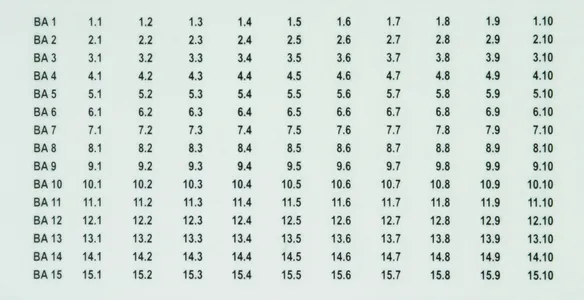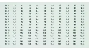 printed with BA1 (1.1-1.10) to BA15 (15.1-15.10)
