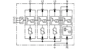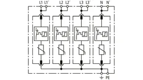 Modular surge arrester with a high total discharge capacity in the N-PE path for TT and TN-S systems (3+1 configuration). Meets the stricter safety requirements as outlined in DIN VDE 0100-534 for use at the feeding point of the electrical installation; with floating remote signalling contact.