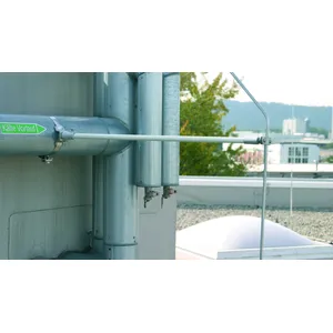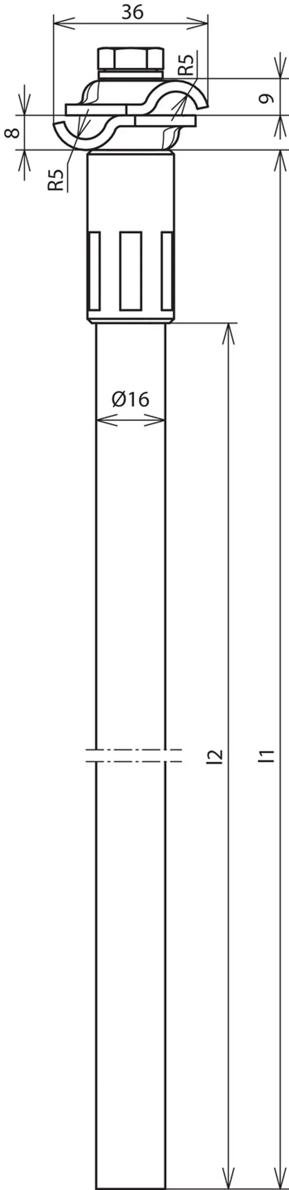 Variable holder range for conductors and air-termination rods for maintaining the separation distance according to DIN EN 62305-3 (VDE 0185-305-3).