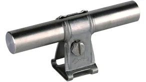 Rod holder with claw, StSt Rod holder with claw For wall mounting with M6 clamping screw, for air-termination rods, earth entry rods or round wires with plastic sheath, fixed conductor routing