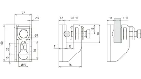 Flat strip holder with thrust piece, projection: 11 mm, StSt