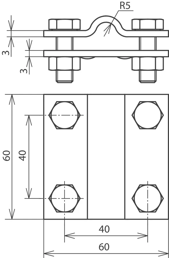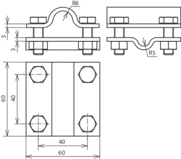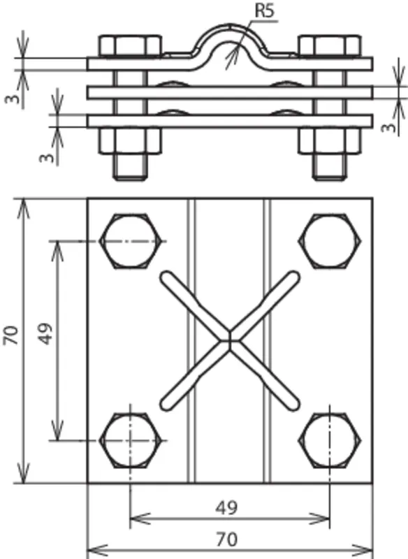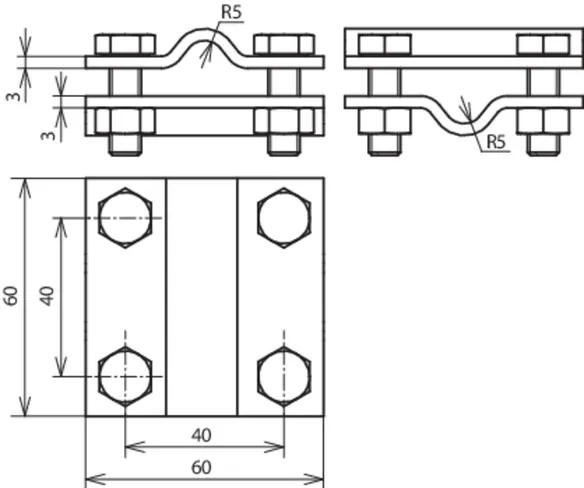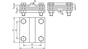 Cross units without intermediate plate for two round and flat conductors HDG steel