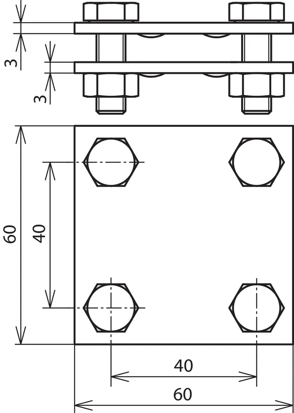cross units without intermediate plate for two flat conductors up to 40 mm, HDG steel