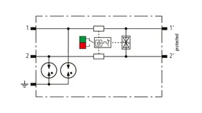 Space-saving, modular surge arrester with a width of 6 mm and push-in connection technology with status indication for protecting 2 lines of stranded unearthed signal interfaces with a nominal voltage of 230 V. With signal disconnection for maintenance purposes.