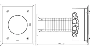 It is continuously adjustable from 90-140 mm. Thanks to the additional spacer, the test joint box can be used for insulation material thicknesses up to 320 mm.