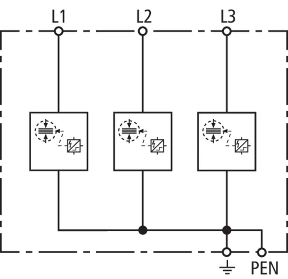 Lightning impulse current (10/350 µs) [L1+L2+L3-PEN] (Itotal ) 22.5 kA