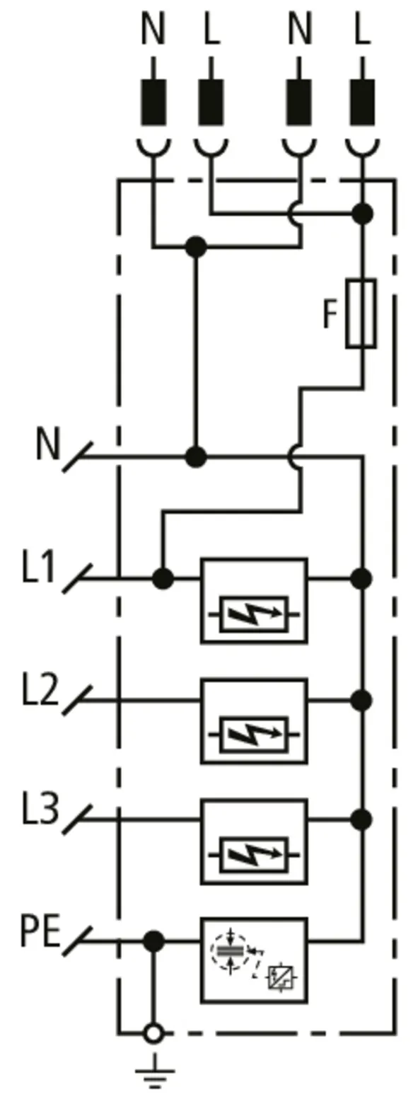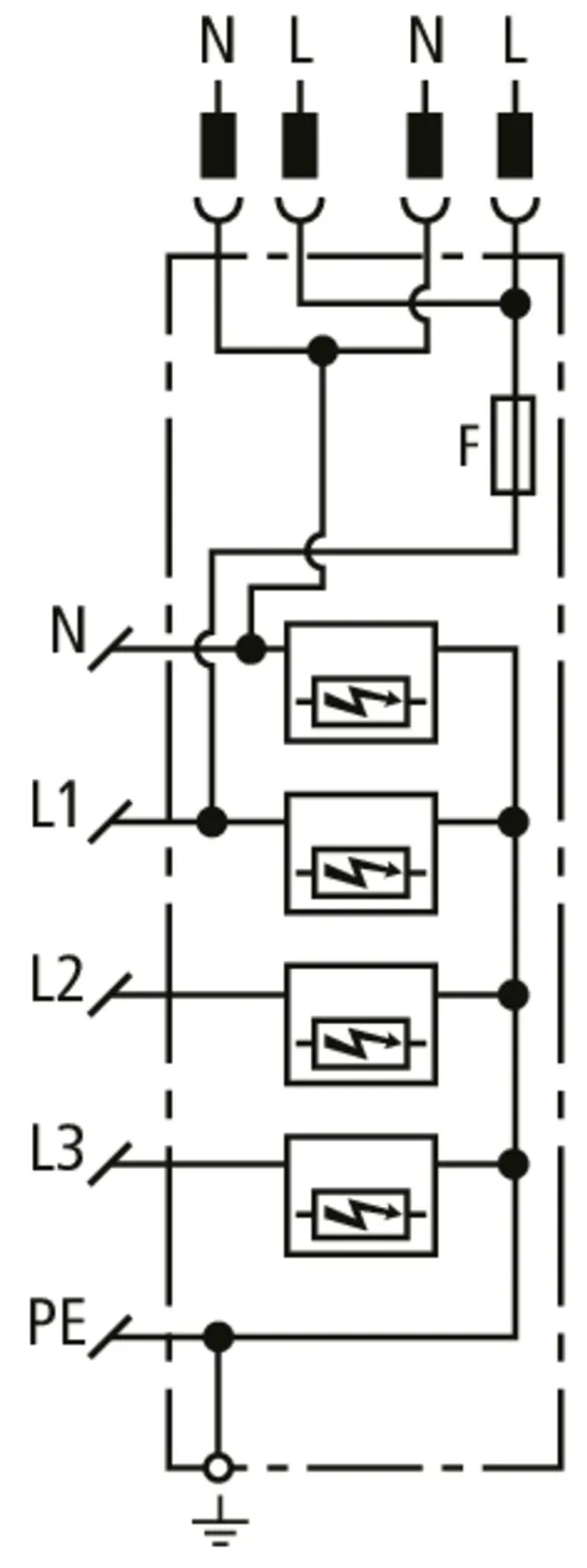 | Lightning impulse current (10/350 µs) [N-PE] (Iimp ) | 30 kA |