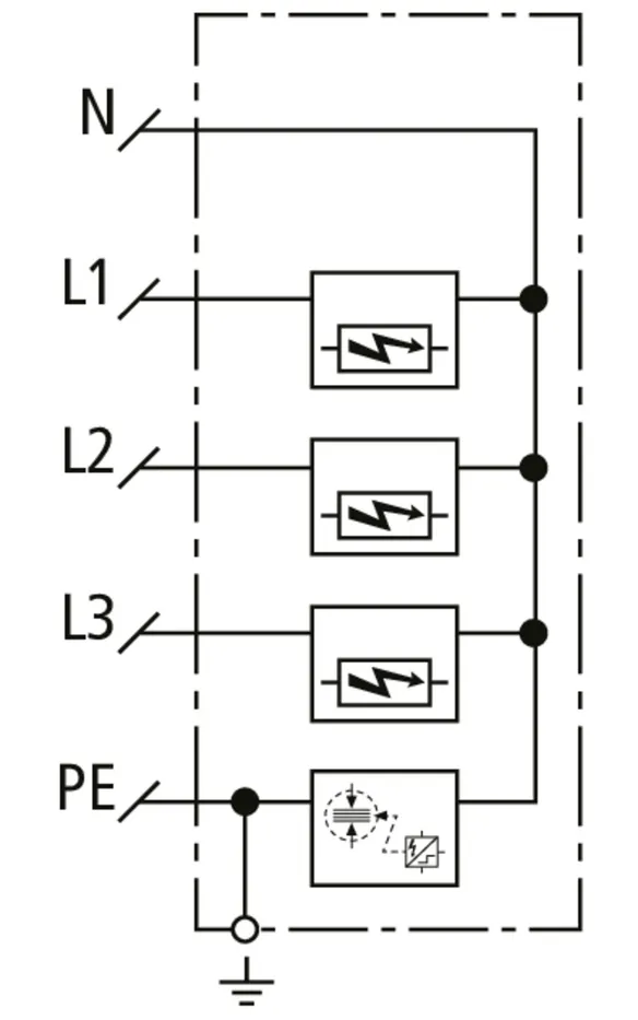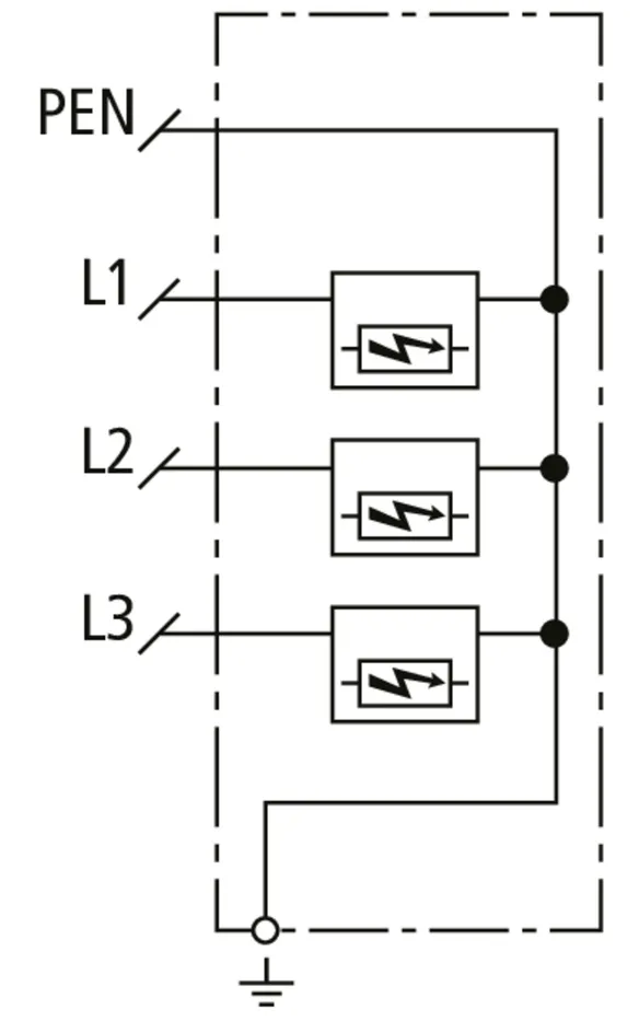 | Lightning impulse current (10/350 µs) [L1+L2+L3-PEN] (Itotal ) | 22.5 kA |