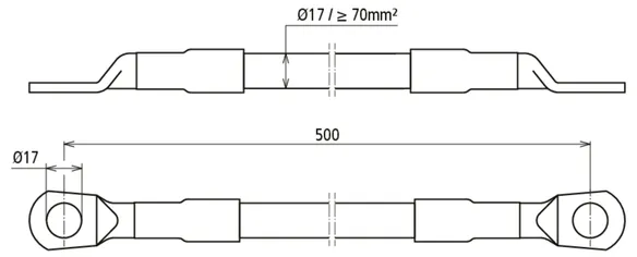 The earthing bridges are designed for earthing, return circuits and equipotential bonding in railway line applications. This version establishes a non-visible connection within the concrete due to the copper-plated steel lugs that are pressed onto the copper cable being welded to the earthing reinforcement. The flexibility of the cable simplifies installation in the reinforcement for the user. The special FLEX versions are especially well suited for installation situations where space is critical – ultra flexible fine stranded copper cables are used here. These earthing bridges also have the technical approval of DB Netz AG and can be used there without hesitation in planning.